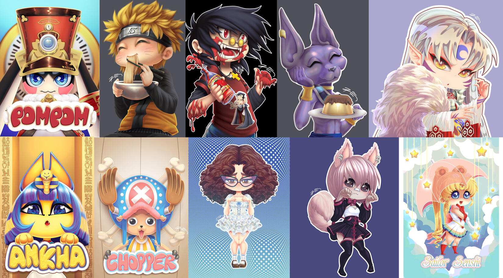Samples of some fully rendered illustrations that I did over the years and below some fully rendered chibis.