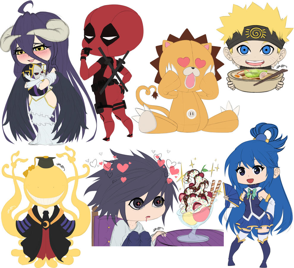 Samples of some fully rendered illustrations that I did over the years and below some fully rendered chibis.